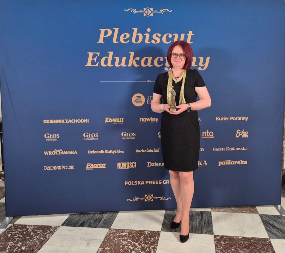 W imieniu całej szkoły pani dyrektor pogratulowała także drużynie i trenerowi zdobycia tytułu Mistrza Polski w roku 2025.