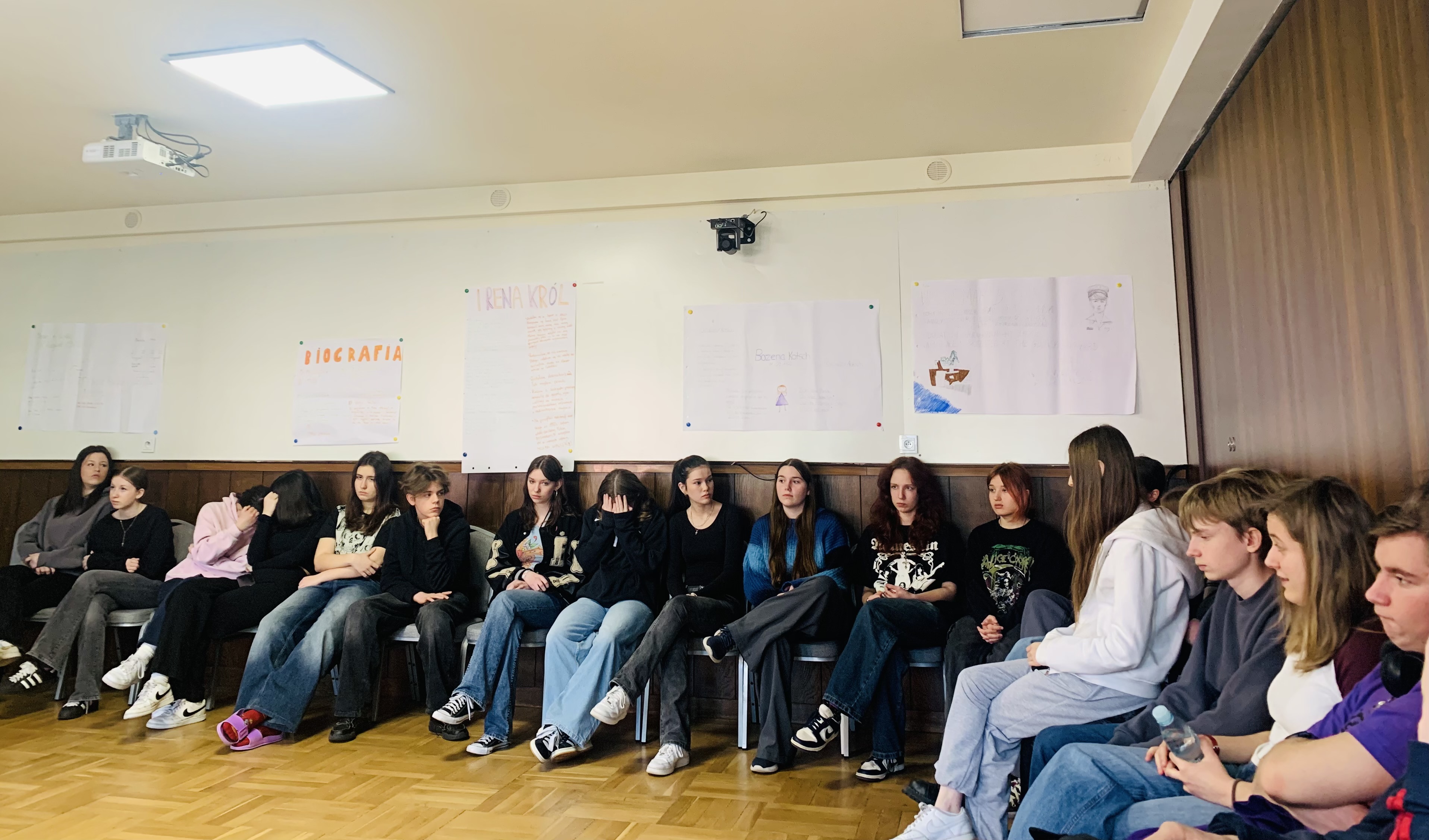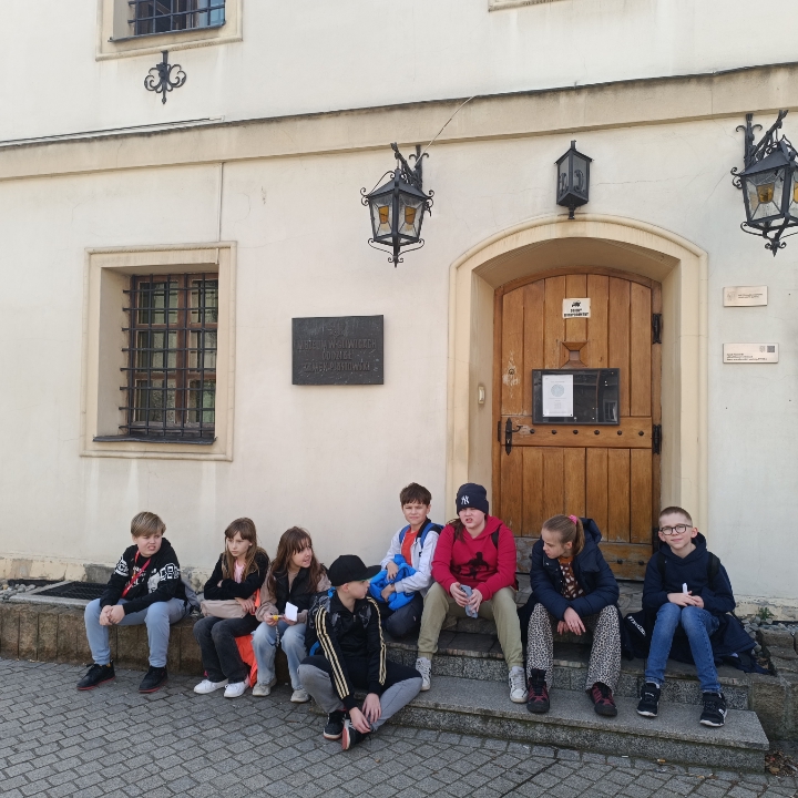 Na zakończenie odwiedziliśmy ekspozycję poświęconą dawnej szkole. Uczniowie mogli usiąść w starych ławkach szkolnych, pisać rysikiem na tabliczkach i poznać, jak wyglądała nauka kilkadziesiąt lat temu. Przewodniczka opowiadała ciekawostki na temat dawnego wychowania, dyscypliny i codziennych obowiązków uczniów.